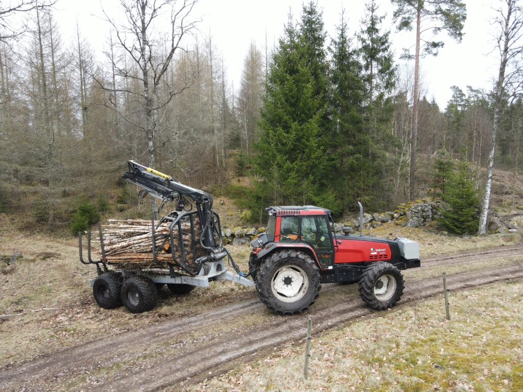 Skogen är viktig för oss, men också den mest arbetsintensiva delen, Förutom skogskötseln på egen fastighet, utför vi även mindre gallringsuppdrag på närliggande fastigheter.